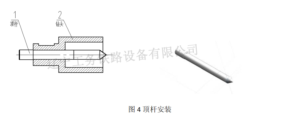 安裝鉆頭時確認(rèn)機(jī)器還沒有發(fā)動!然后將選好的鉆頭插入頂桿(見圖 4 頂桿安裝),把配好頂桿的鉆頭放進(jìn)主軸內(nèi)孔,用力頂住鉆頭,在用內(nèi)六角扳手旋緊緊固螺釘。